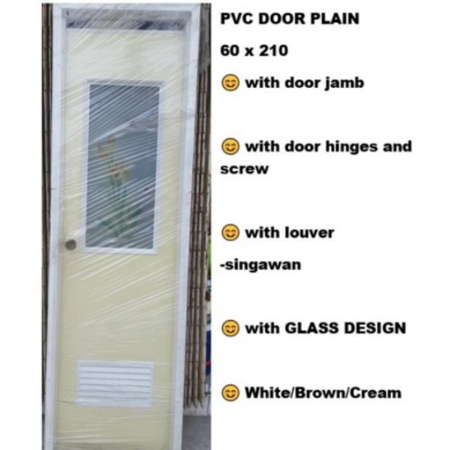 Pvc Door Bathroom Door 60x210 With Louver Set Glass Design