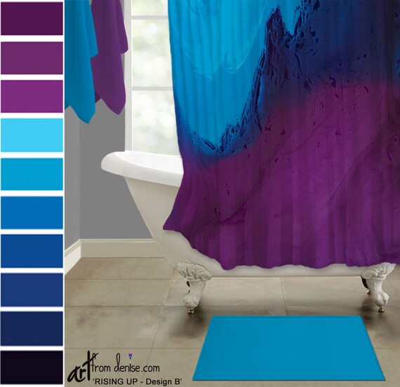 Contemporary Plum And Blue Shower Curtain Abstract Jewel Tone Etsy