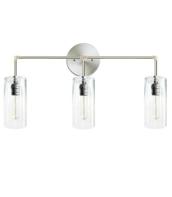 3 Arm Modern Industrial Farmhouse Wall Sconce Brushed Nickel Etsy
