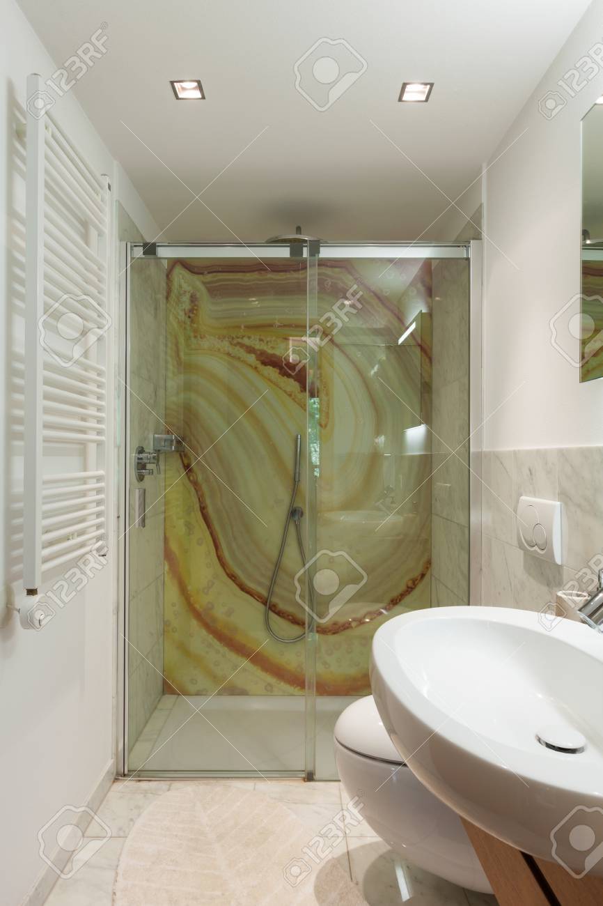 Interior Of Modern House Beautiful Bathroom Marble Shower Stock