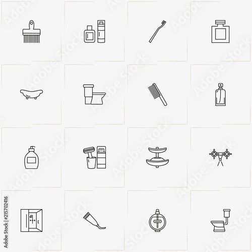 Bathroom Line Icon Set With Baby Bath Teeth Brush And Comb Stock