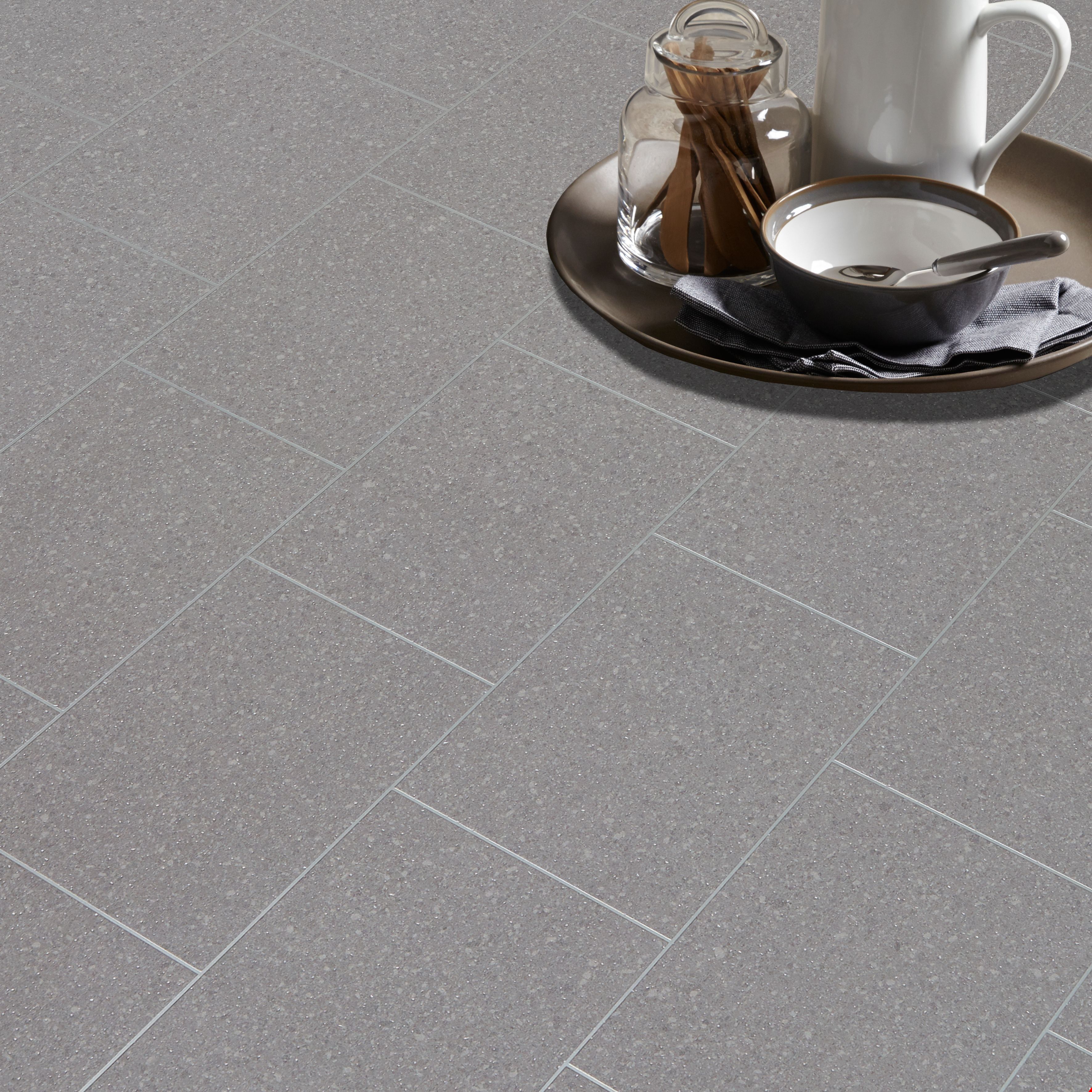 Colours Monzen Grey Tile Effect Vinyl Flooring 4m Departments