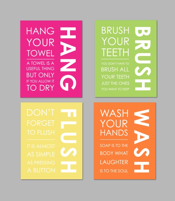 Bathroom Wall Art Kids Bathroom Art Wash Flush Brush Etsy