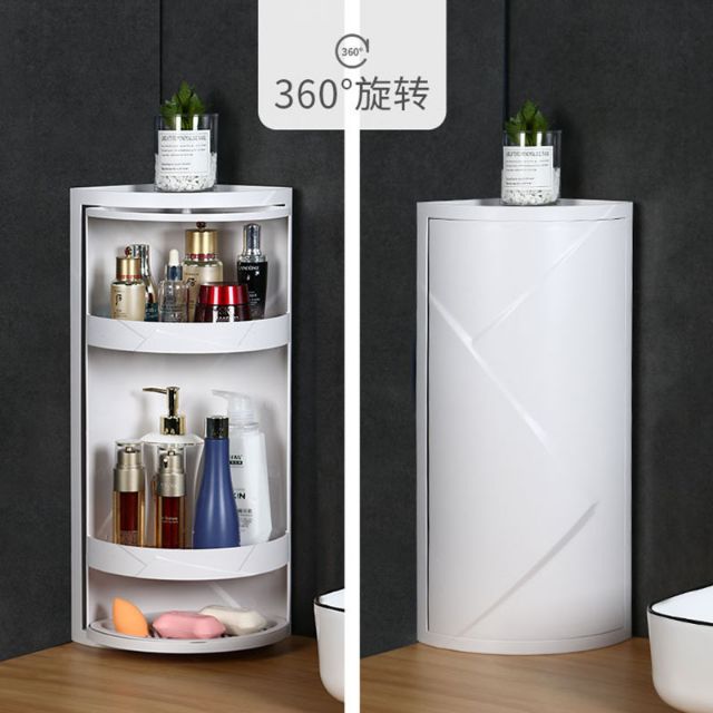 Rotating Corner Storage Rack Triangle Wall Shelf Bathroom Makeup