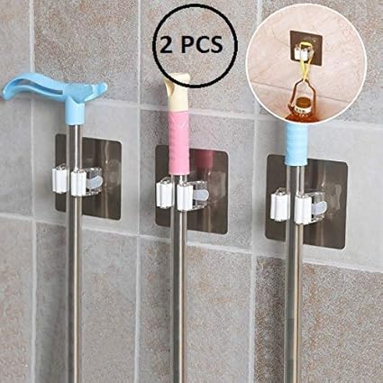 Snepcom Pack Of 2 Wall Mounted Mop Broom Hanger Holder Organiser